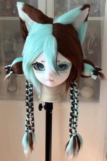 着ぐるみヘッド kigurumi NO.178 猫 ミントグリーン ファースーツ 全頭ヘッド ケモノ マスク ぬいぐるみ コスプレ コスチューム