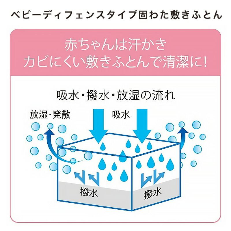 ②固わた敷きふとん:ふとんがわ:綿100%/ 詰めもの:ポリエステル100%/詰め物重量:1.6kg(一部再 生わた使用)ディフェンスタイプ敷きふとん