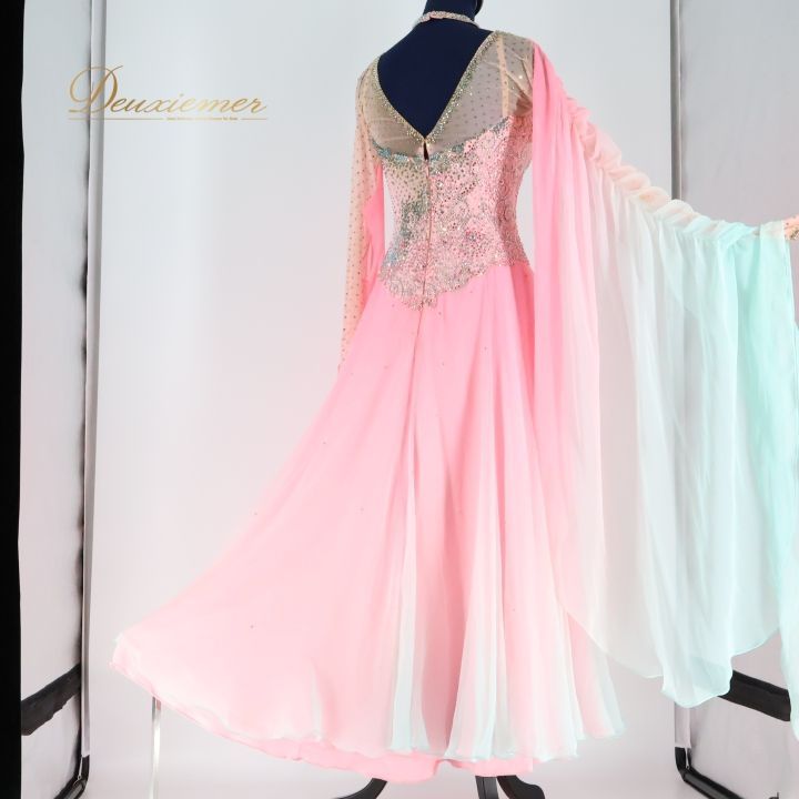 社交ダンス 衣装 ドレス ワンピース エダスー edda hsu フロート ピンク系 グラデーション 水色 感 重ね 明るいピンク レディース フォーマル衣装 ダンスウェア 社交ダンス衣装