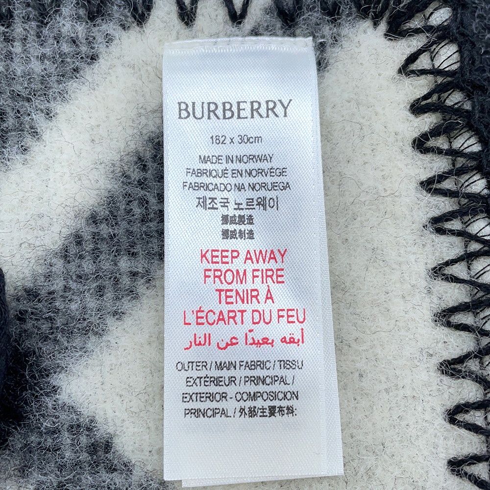 バーバリー マフラー チェック ウールスカーフ ブランケットステッチ 馬上の騎士 BURBERRY 黒