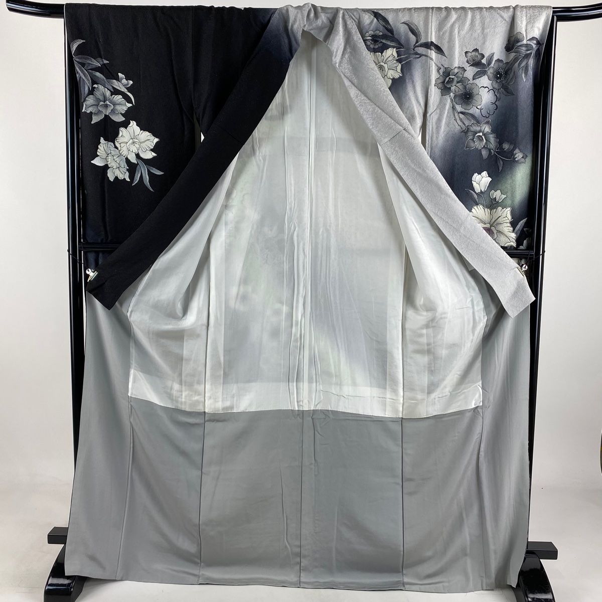 振袖 身丈171 cm 裄丈68.5 L 袷 草花 銀通し 銀彩 灰色 正絹
