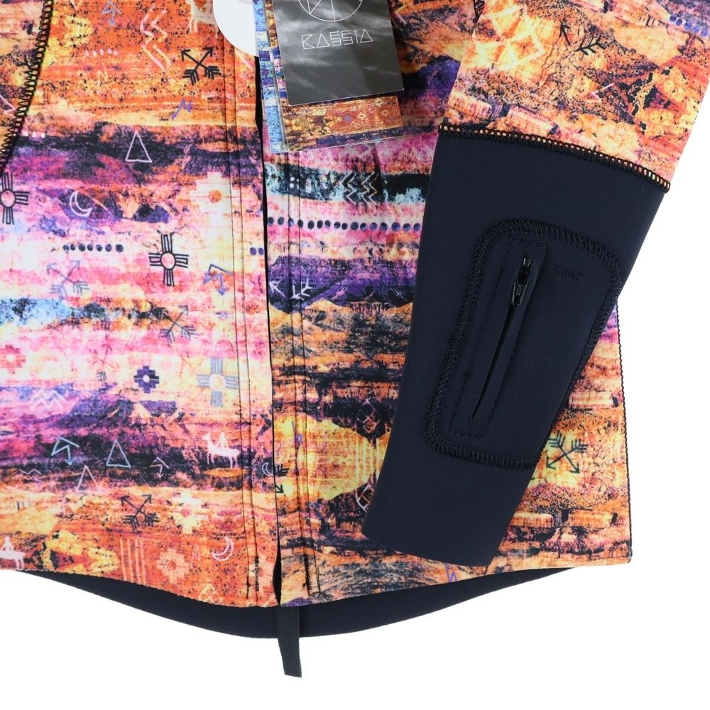 【品名】KASSIA カシア フロントジップロングスリーブスプリングウェット レディース 総柄スイムウェア 水着 パープル