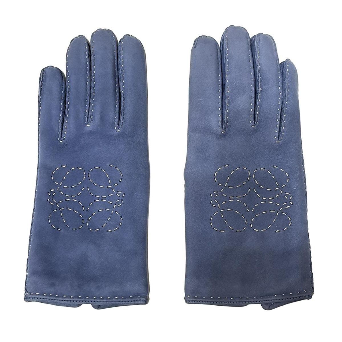 LOEWE ロエベ 手袋 レディース - ブルーグレー×アイボリー アナグラム ウール