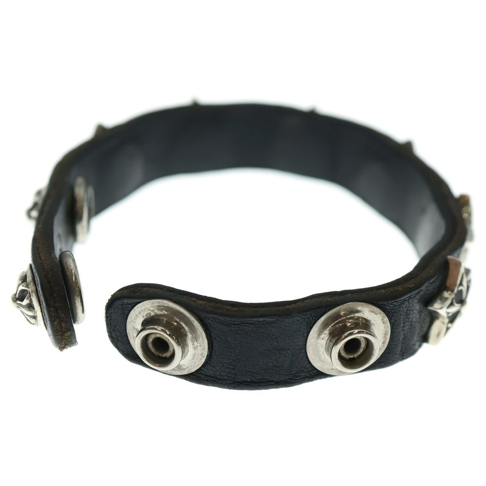 CHROME HEARTS クロムハーツ 2 SNP BTN STAR クロスボール 2ボタン 2スナップ スター レザーブレスレット シルバー ブラック