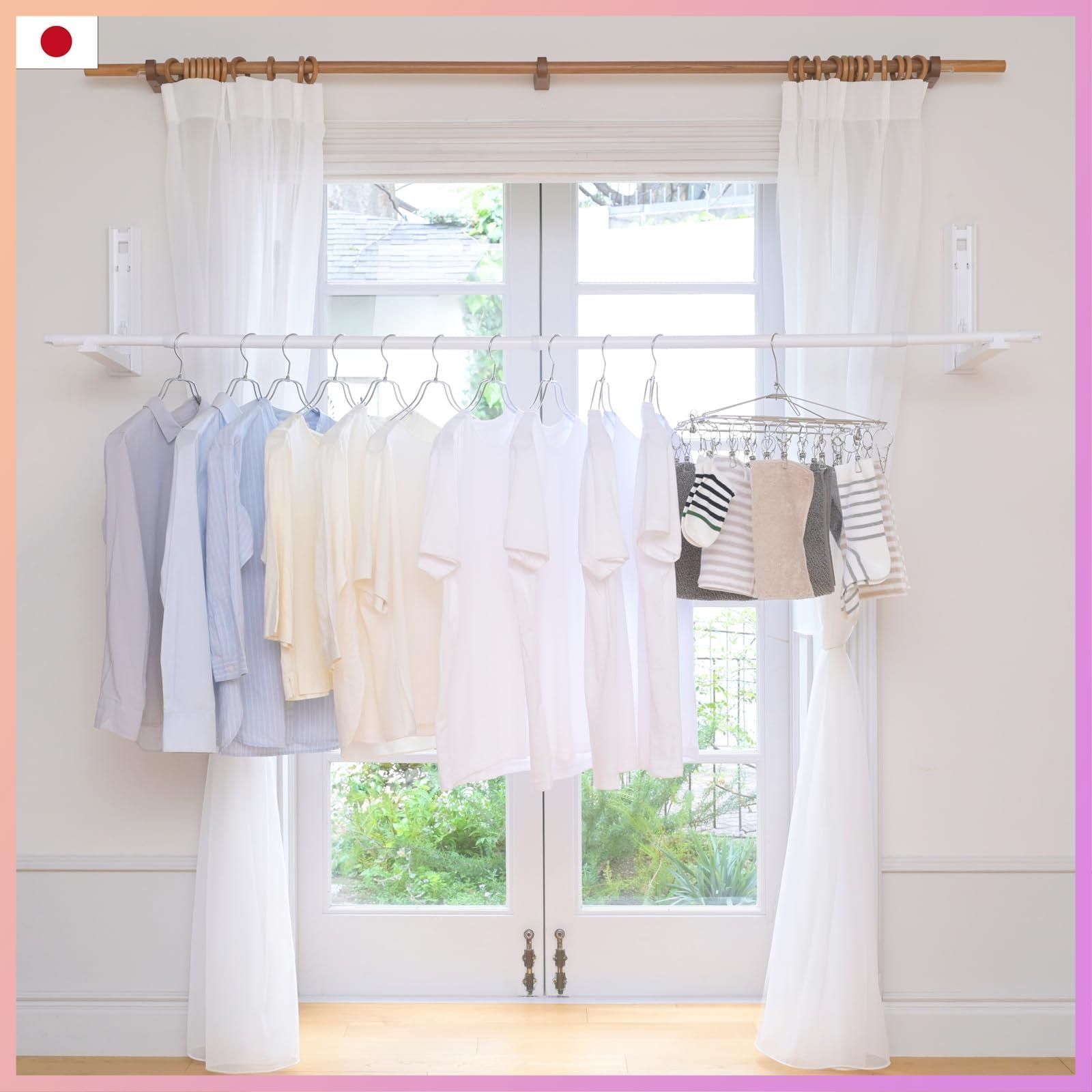 [山善] 室内物干し 物干し竿 室内 省スペース 洗濯物干し 伸縮 壁付け 日本製 (コーナーでも使える/取付け穴が目立たない) 耐荷重10kg 部屋干し 竿内寸最大2m 窓枠 梅雨 組立品 ホワイト NPH-8025(WH)
