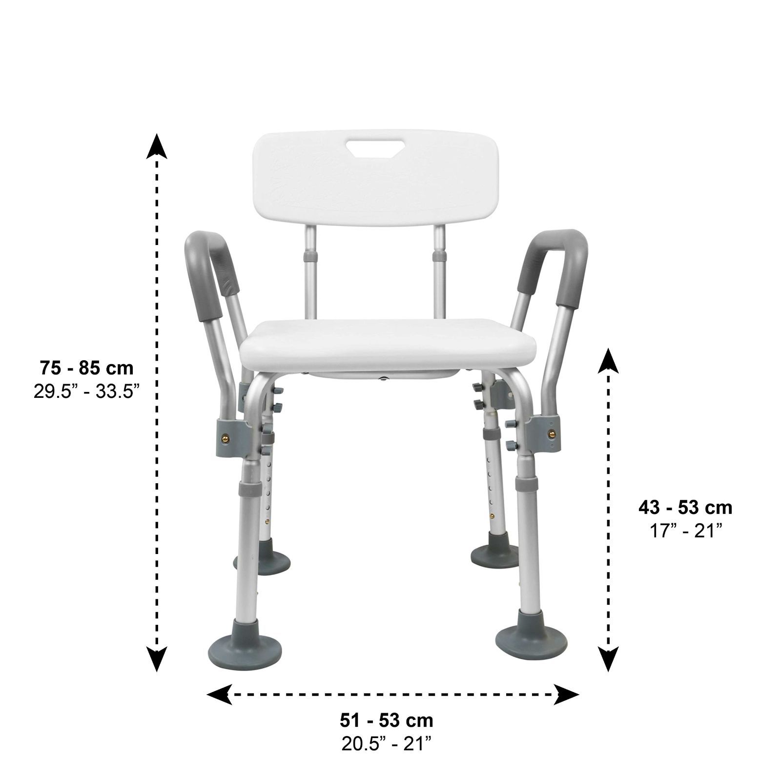 調節可能:5つの設定で高さを調節できるアルミニウム製の脚により、シャワーチェアは高さを4353 cmに簡単に調節できるため、個々のニーズに対応できます。