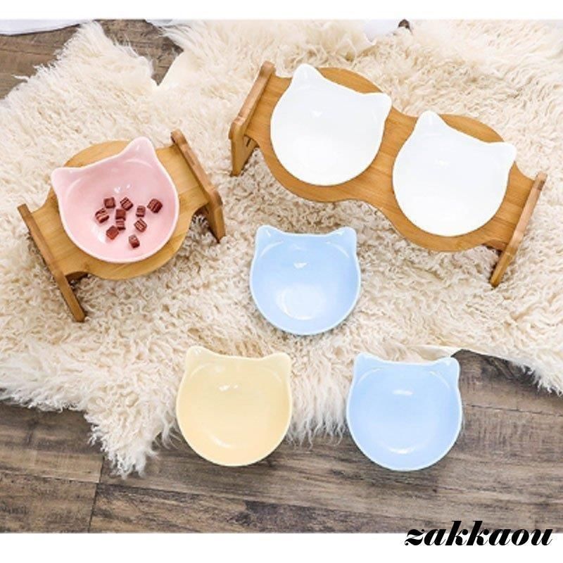 フードボウル 猫用 犬用 猫食器 犬食器 ペット ごはん皿 セラミック かわいい イラスト 台付き 高さ調節 竹製 スタンド 組み立て