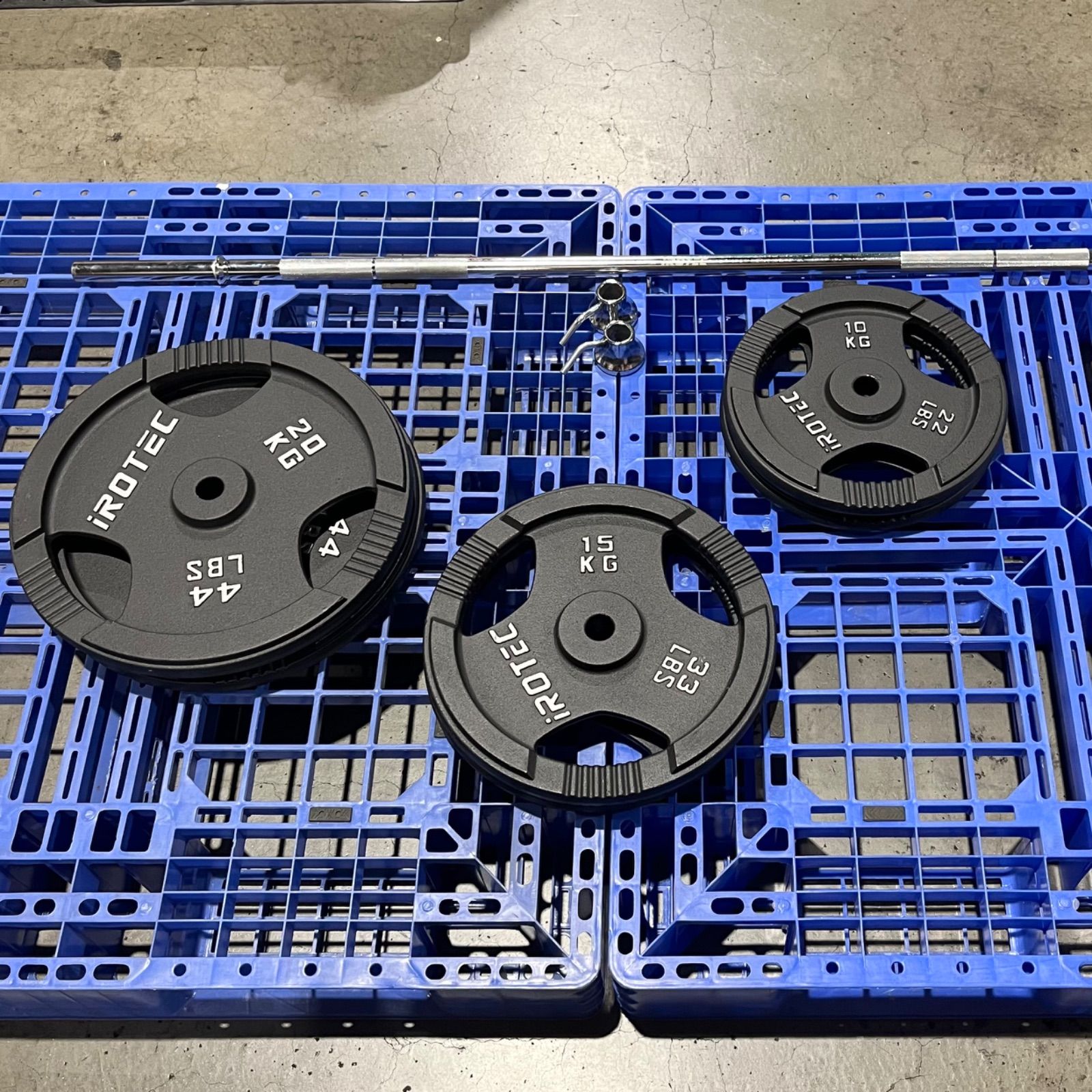 IROTEC ショートアイアンバーベルセット 径 28 mmシャフト ベンチプレス バーベル-プレート98 kg Aランク 279
