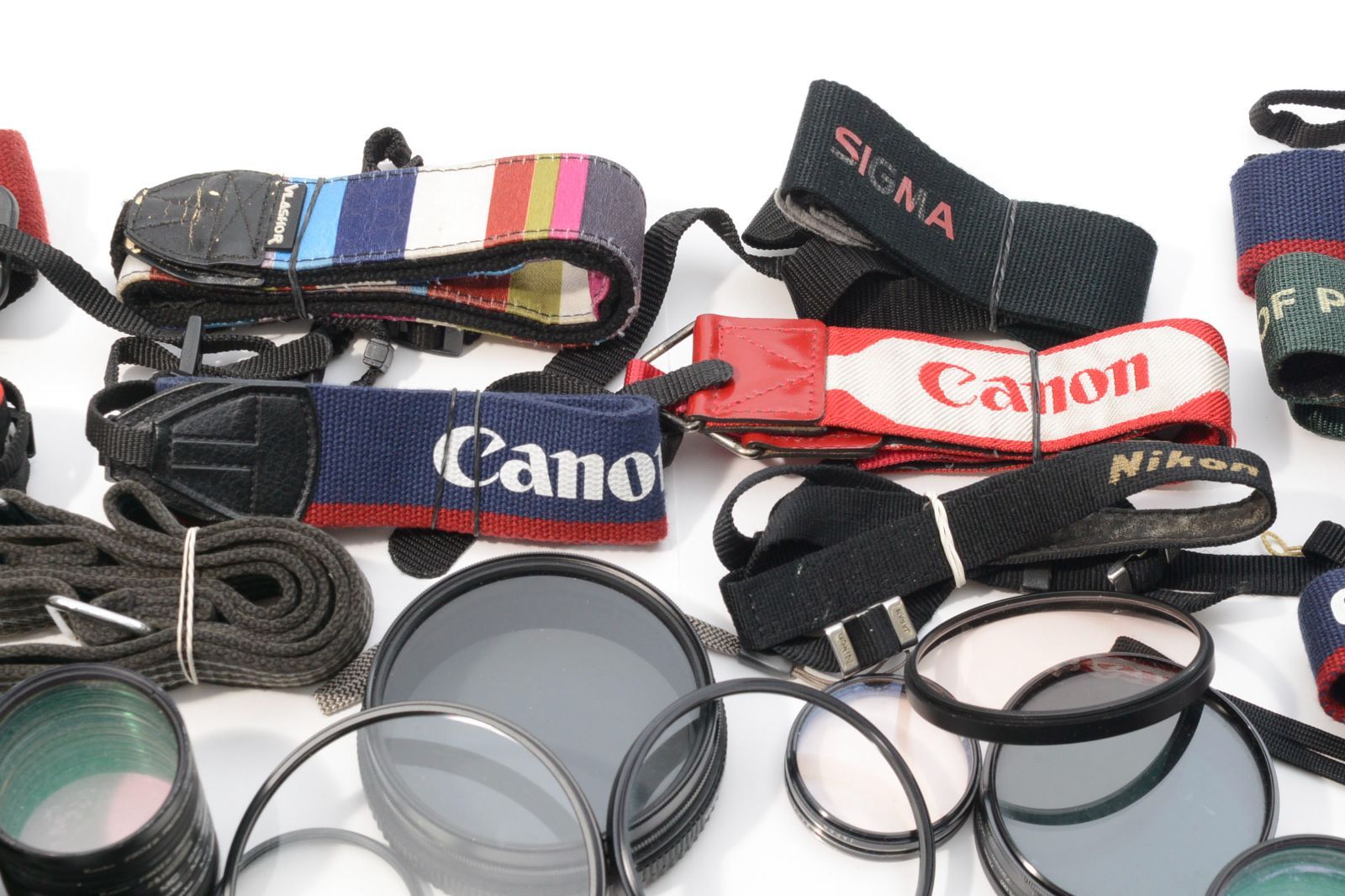 カメラ備品 大量まとめ フィルター41個 フィルム9個 ストラップ15個 キャップ フード