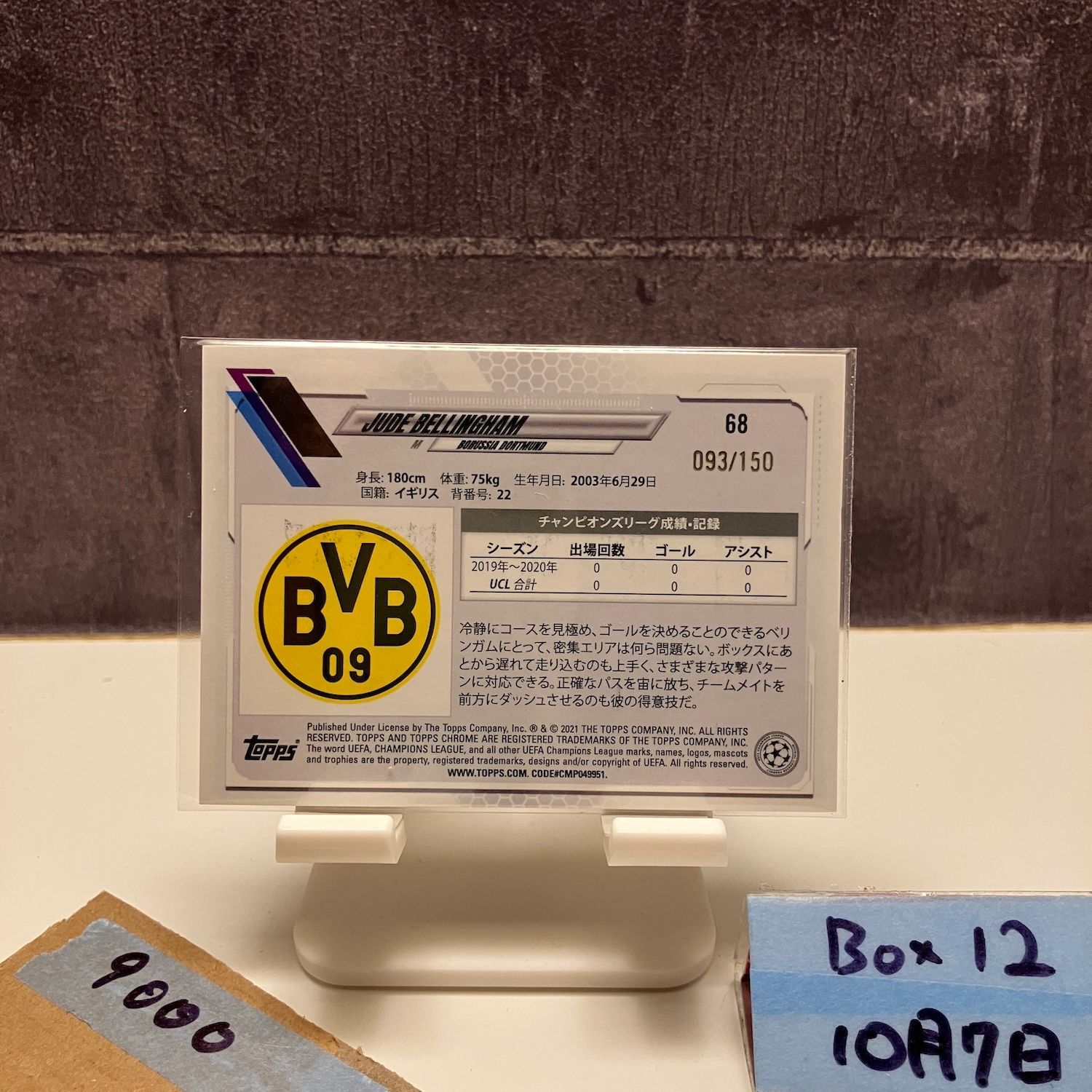 2020 Topps Chrome UEFA Champions League Jude Bellingham 093/150 Borussia Dortmund RC ルーキー Rookie Mojo Refractor