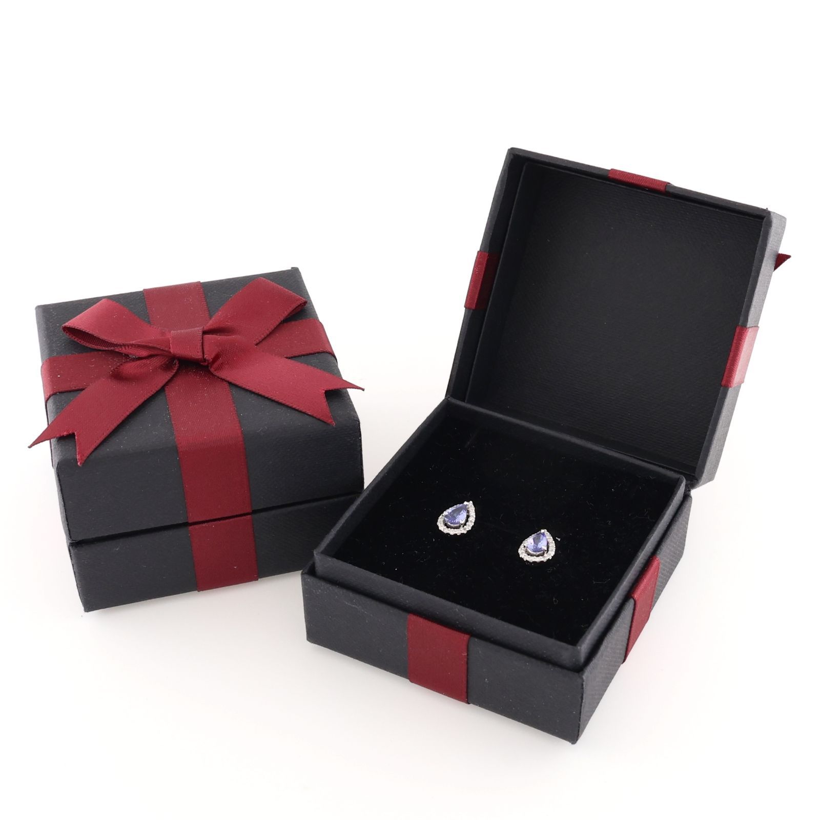参考定価89 700円 K 14 WG ホワイトゴールド タンザナイト 0.64 ct ダイヤモンド 0.22 セット ピアス ジュエリー 取り巻きメレダイヤモンド リボンケース付き