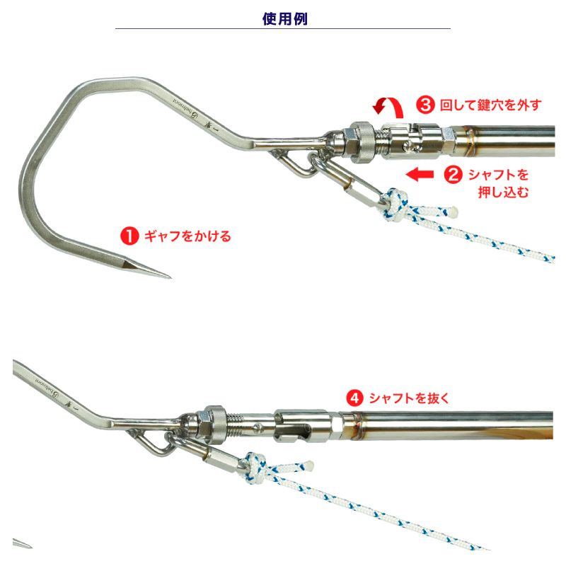 ●ギャフとシャフトを状況に合わせて固定したり、外してフライングギャフとして使用できるアダプター。