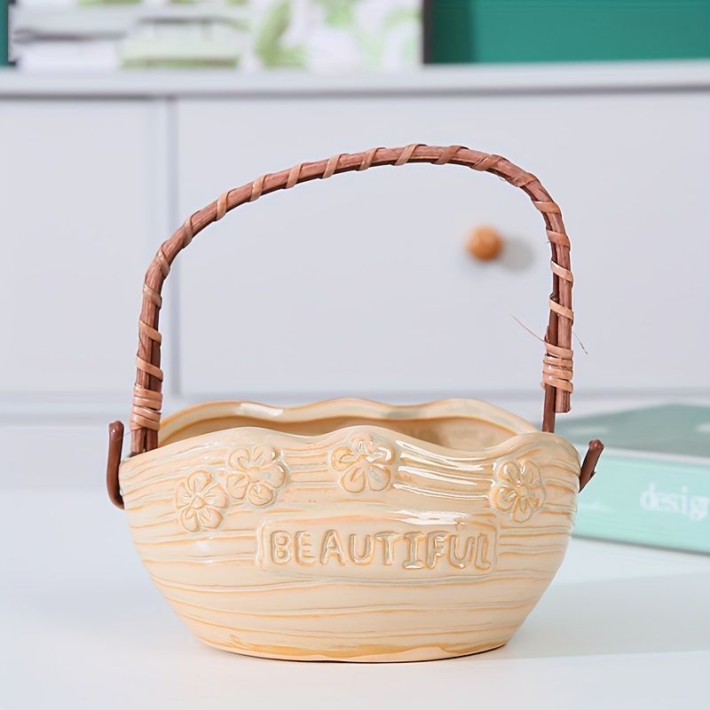 植木鉢 多肉植物鉢 サボテン鉢 かわいい セラミック製 おしゃれ プランター 小型植物適用 多肉植物ポット 卓上 置物 インテリア プレゼント 室内 持ち手付き 園庭 ガーデン デコレーション オブジェ 玄関 リビング ダイニング