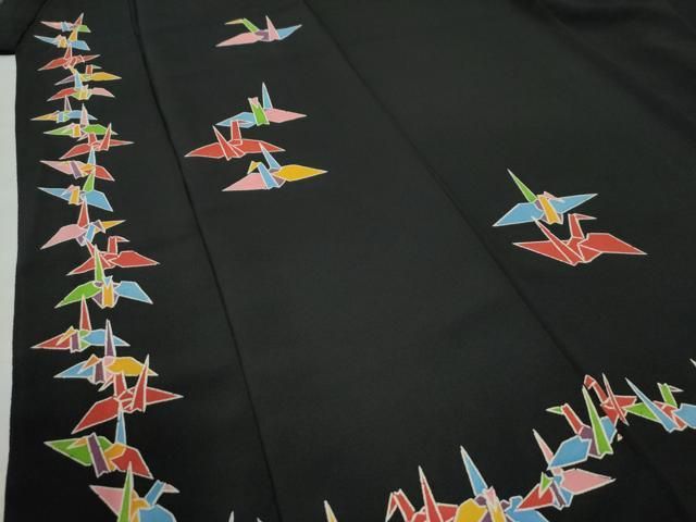 平和屋着物 訪問着 型染め 折り鶴 黒地 正絹 yc