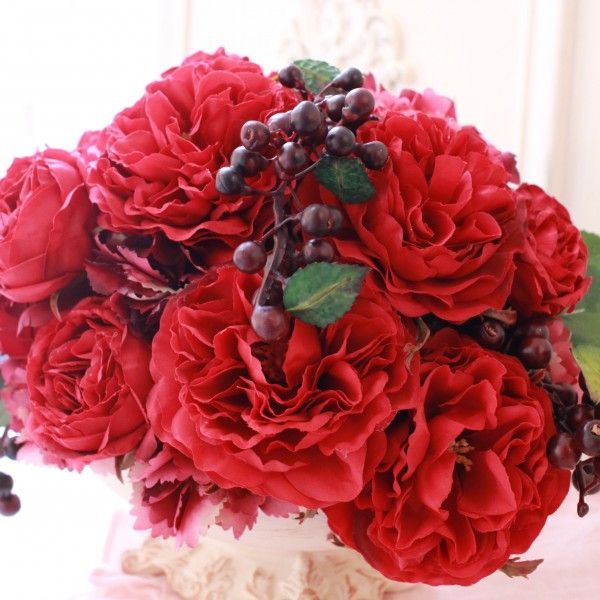 こちらは赤薔薇のオールドローズとベリーをアクセントにエレガントなスタイルに仕上げました