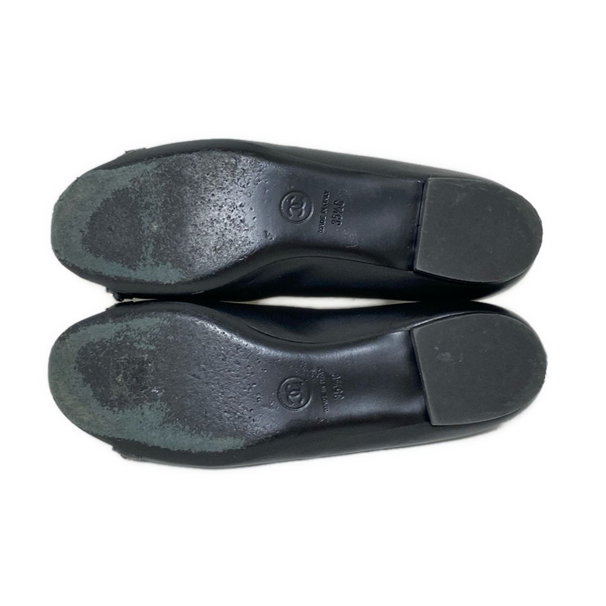 CHANEL シャネル フラットシューズ 351 2 C レディース - G 29800 黒 チェーン オープントゥ レザー