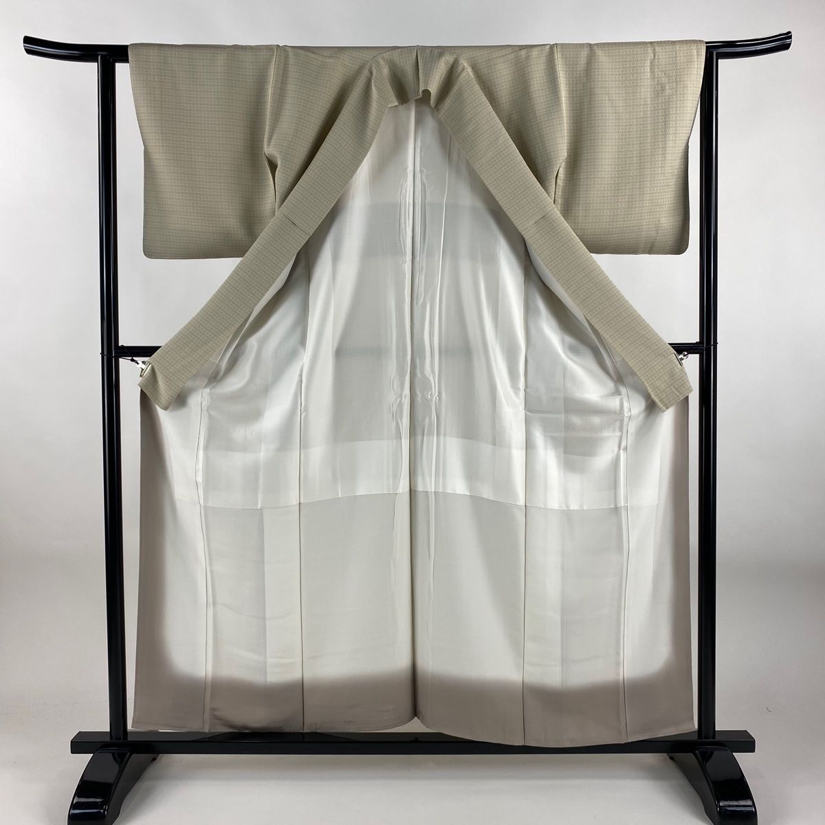 お召 身丈158 cm 裄丈61.5 S 袷 幾何学模様 ベージュ 正絹