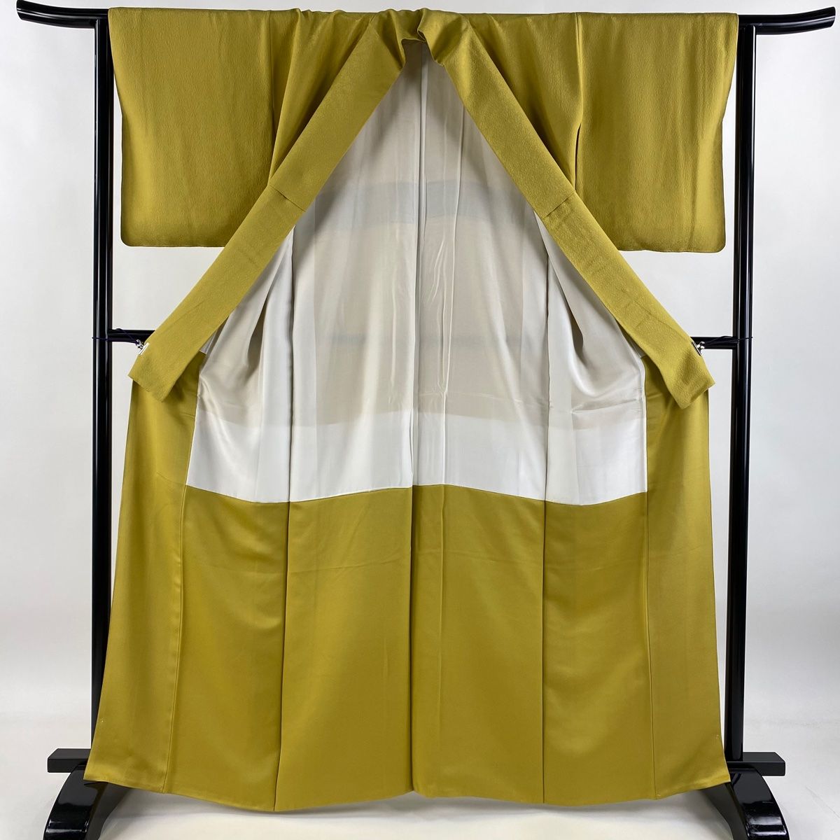 色無地 身丈164 cm 裄丈63.5 S 袷 斉藤三才 袋名古屋帯セット 落款 地紋 からし色 正絹 秀品 一つ紋