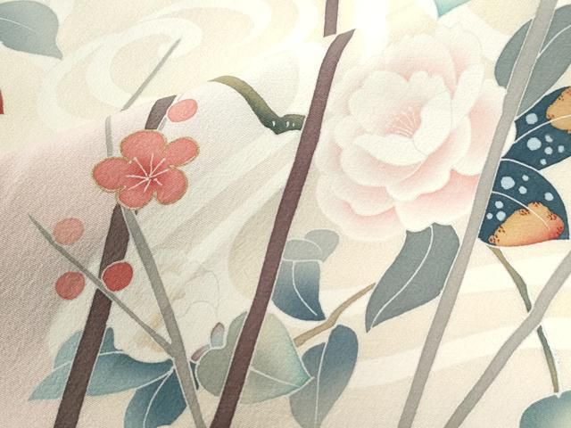 平和屋着物 訪問着 作家物 流水牡丹枝梅文 暈し染め 金彩 正絹 yc