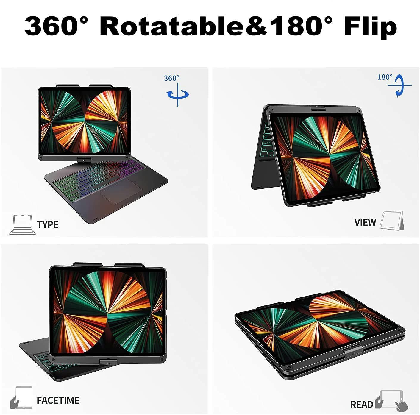 360°回転 iPad キーボードケース 8.3/10.2/10.9/11/12.9/13インチ キーボード付きケース 180°反転 タッチパッド付き 7色バックライトキーボード 急速充電可能 全面保護Bluetoothキーボード一体式pencilを充電可能 スタンド機能付き