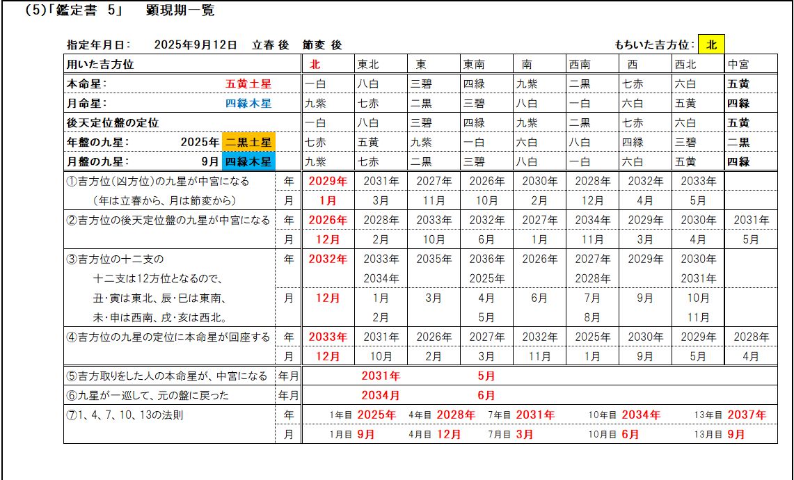 ・用いた吉方位の九星の定位に、本命星が回座した年月。
