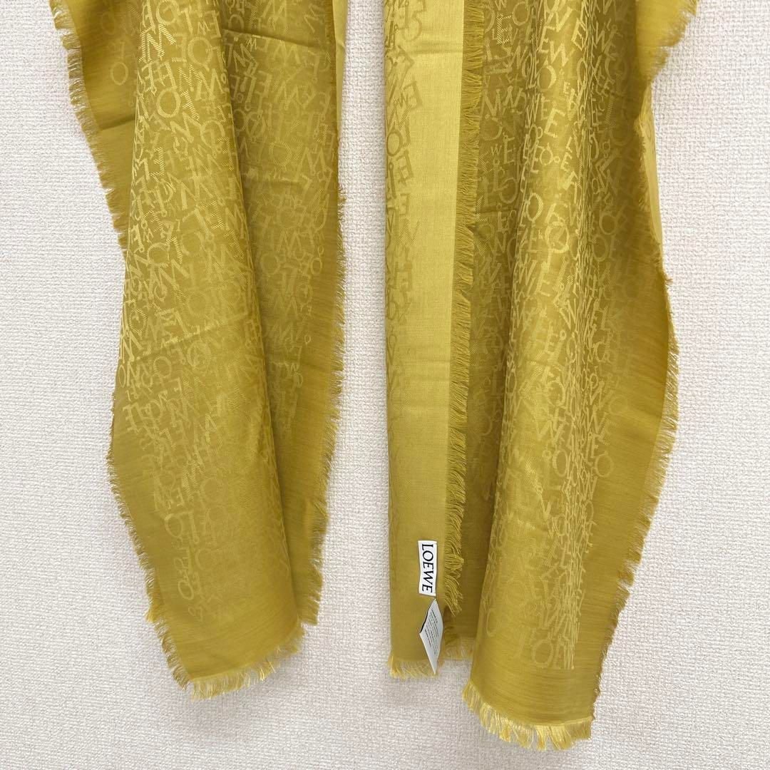 LOEWE ロエベ ロゴ総柄 フリンジストール イエロー カーキ シルク ウール イタリア製