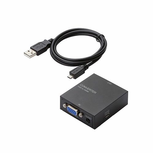 映像出力方法がVGA(D-Sub15pin)のみのパソコンから、HDMI入力のテレビやディスプレイ・プロジェクタに映像出力・音声転送することができるVGA-HDMI変換コンバーター。