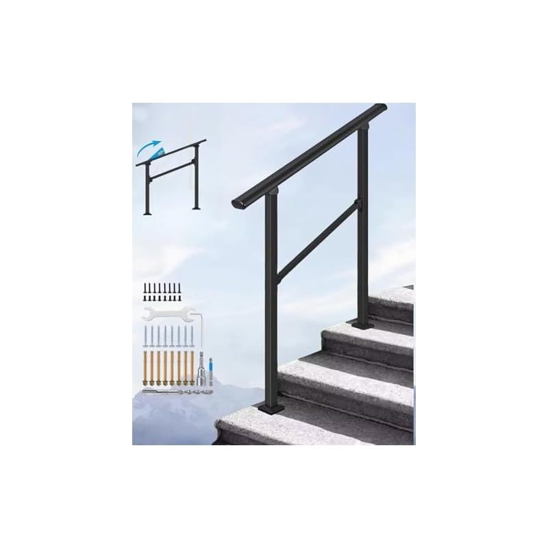在庫 屋外 階段 手摺り DIY 手すり 高炭素鋼 階段手摺 15-55°角度調整 防錆 安全 滑り止め 高齢者 妊婦 子供 リハビリテーション患者 簡単な取り付け ブラック日本語説明書付き SJLTF 0