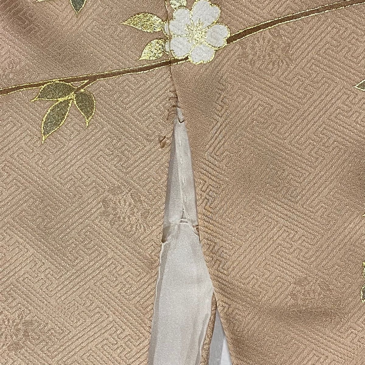 訪問着 身丈162 cm 裄丈67 M 袷 扇面 草花 刺繍 金糸 ピンクベージュ 正絹 秀品