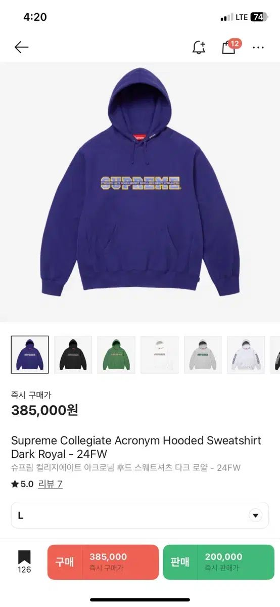 L シュプリーム カレッジエイト アクロニウム フーデッド スウェットシャツ ダーク ロイヤル