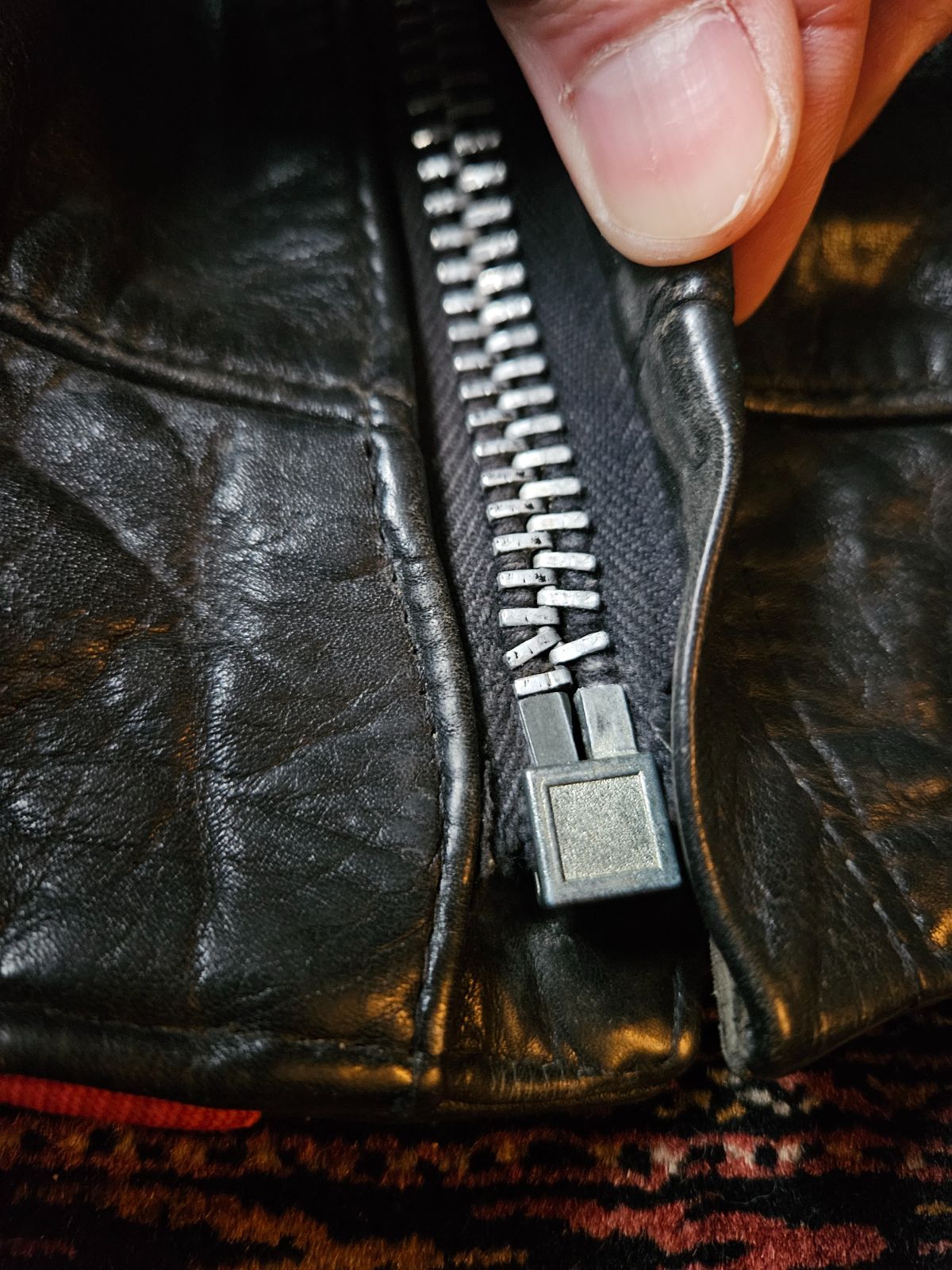 フロントジッパー下部のコマが1つ抜けていますが現状開閉は可能です。