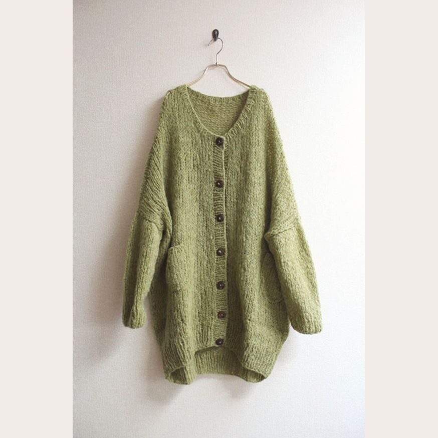 つつむ 手編みモヘアロングカーディガン 若草オリーブ